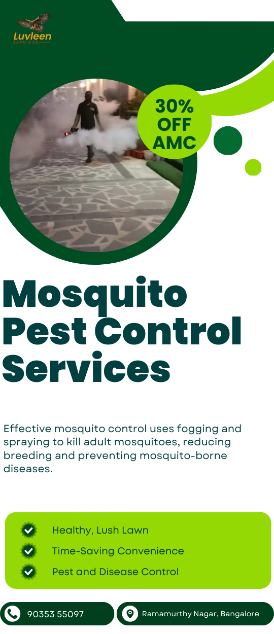 At Luvleen Services, we specialize in providing mosquito pest control services designed to give you long-lasting relief. Through advanced mosquito fogging, spraying, and eco-friendly treatment methods, we ensure your environment remains safe, hygienic, and mosquito-free.